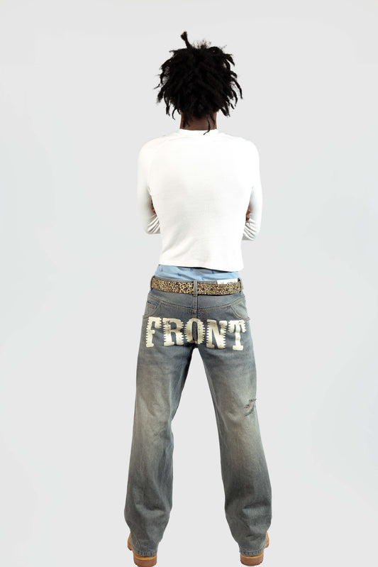 Leather Patched Backwards Denim